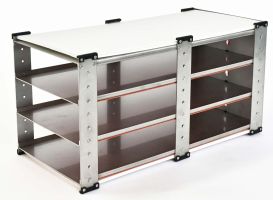 The CryoDry® CD8 Fixed 3 Heated Shelf Stack is designed to accommodate larger product products including deep well plates. This stack consists of three fixed heated shelves with dimensions of 465 mm x 210 mm, providing a total shelf area of 2,928 cm². The inter-shelf distance of 40 mm allows for optimal air circulation during the freeze-drying process. Made of corrosion-resistant stainless steel, this tray is easy to clean and built to last.