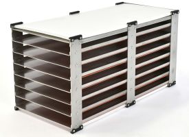 The CryoDry® CD8 Fixed 7 Heated Shelf Stack is designed for high-capacity use with small products. This stack consists of seven fixed heated shelves with dimensions of 465 mm x 210 mm, providing a total shelf area of 6,832 cm². The inter-shelf distance of 28 mm allows for optimal air circulation during the freeze-drying process. Made of corrosion-resistant stainless steel, this tray is easy to clean and built to last.