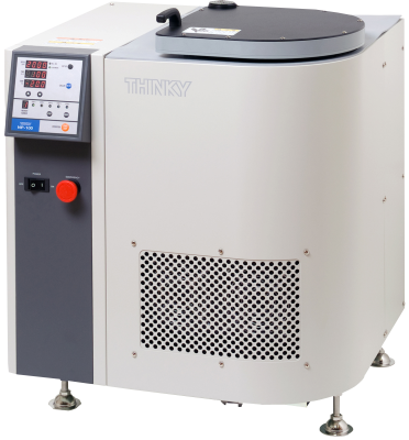 Nano Pulverizer NP-100 was designed with an optimized planetary centrifugal ratio to maximize the collision energy. NP-100 has strong centrifugal forces caused by rotation and revolution motion. The centrifugal forces add acceleration to the pulverizing media (zirconia balls) and strongly pulverize materials. Although dry-milling less than 3 micron pulverization is principally difficult, wet-milling enables nano pulverizing.