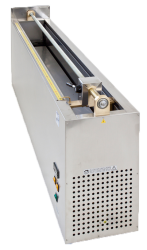 • Front panel including manual controls for carriage movement, main switch, and temperature thermoregulator.