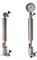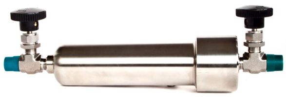 • Stainless steel cylinder 500ml with needle valve, internal PTFE treatment, and stainless steel connection tubing with a central metering valve.