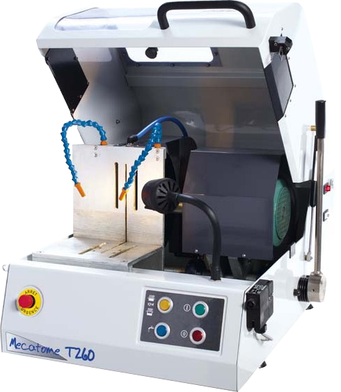 MECATOME T260 provides maximum flexibility and rapid set up through the provision of an easily accessible cutting table that allows quick sample clamping in either the vertical or horizontal plane with the provided vises.