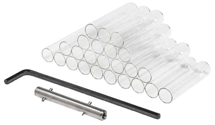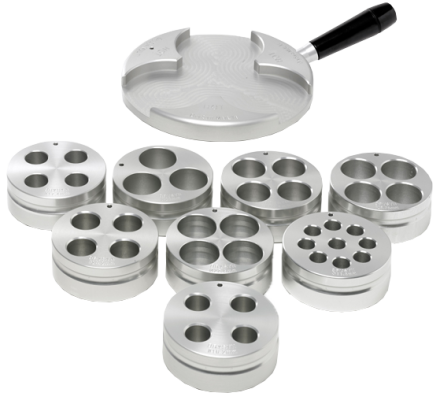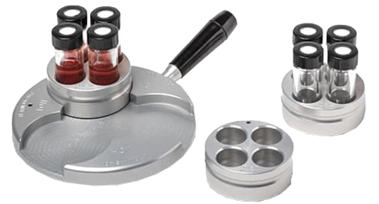This kit accommodates a range of standard reaction tubes and vials of different diameters.