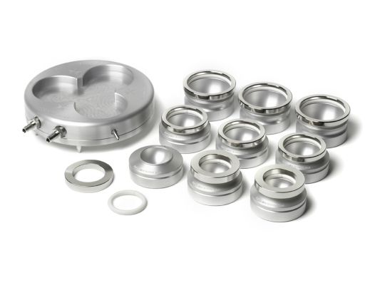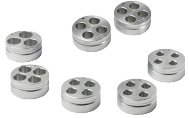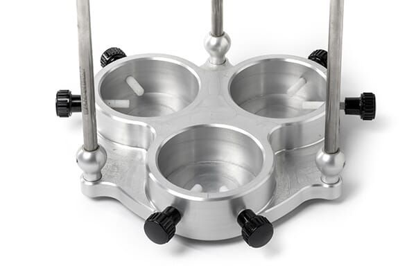 This MULTI system base allows 3 x flask or vial inserts to be used in parallel or 1 x insert to be used in the centre at a time.