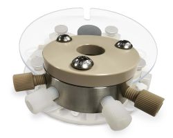 The reactor MAXI HASTELLOY kit includes 5 continuous stirred tank reactors (CSTR) of 7.5 mL volume each, manufactured from Hastelloy.