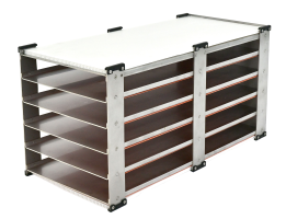 The CryoDry® CD8 Fixed 3 Heated Shelf Stack is designed to accommodate larger product products including deep well plates. This stack consists of three fixed heated shelves with dimensions of 465 mm x 210 mm, providing a total shelf area of 2,928 cm². The inter-shelf distance of 40 mm allows for optimal air circulation during the freeze-drying process. Made of corrosion-resistant stainless steel, this tray is easy to clean and built to last.
