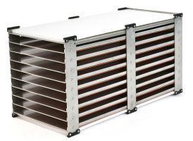 The CryoDry® CD8 Fixed 9 Heated Shelf Stack is designed for drying of liquid product. This stack consists of nine fixed heated shelves with dimensions of 465 mm x 210 mm, providing a total shelf area of 8,784 cm². The inter-shelf distance of 19 mm allows for optimal air circulation during the freeze drying process. Made of corrosion-resistant stainless steel, this tray is easy to clean and built to last.
