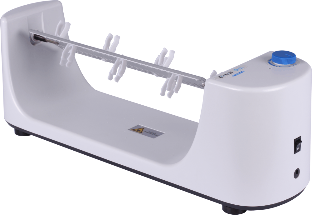 The Eins-Sci E-RRM-A analogue tube rotisserie rotator has a cost effective and ergonomic design that is perfect for all laboratory applications that require gentle tube mixing. The E-RRM-A can mix a variety of tubes including 1.5ml Eppendorf tubes, 15 ml or 50 ml centrifuge tubes. The Eins-Sci rotisserie tube rotator is ideal for mixing blood samples to avoid coagulation, keeping biological samples in suspension and aerating cultures. Variable speed means that the aggressiveness of the mixing can be adjusted for a specific application.