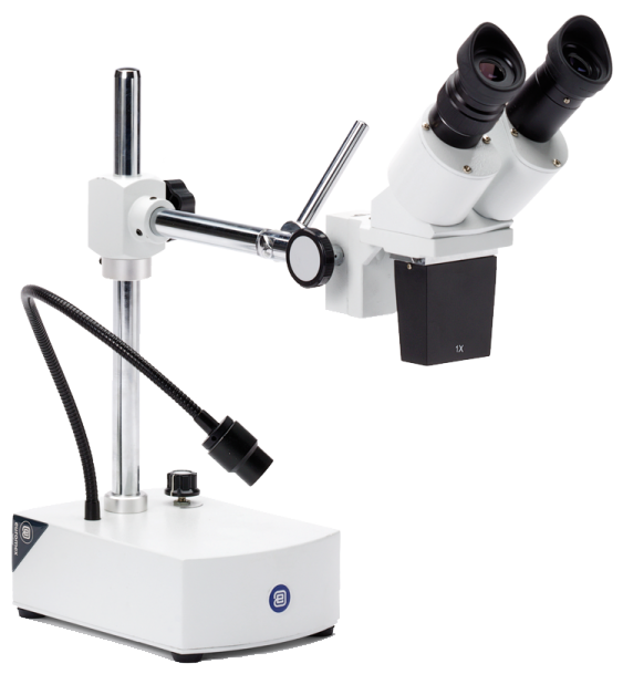 A 44 cm flexible arm LED light source makes sure the object can be illuminated from any angle. The heavy, metal base makes this system very stable. Magnifications lie varies from 2.5x to 40x.