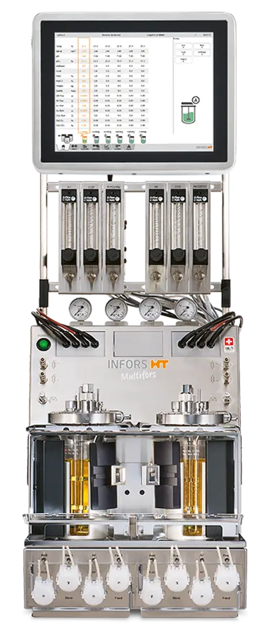 With Multifors 2 you can work with up to six bioprocesses in parallel. Thanks to a selection of preconfigured packages and a variety of connection possibilities and options, you will be ideally equipped for optimizing sophisticated bioprocesses on a small scale.