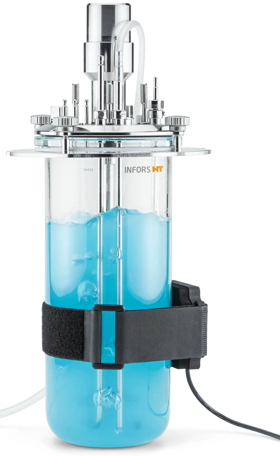 The CGQ BioR is a sensor attached to the glass wall of the bioreactor and the biomass will be measured optically. As a user-friendly plug-and-play technology, the sensor is compatible with various types and scales of bioreactors. The CGQ BioR can be integrated into the latest generation of INFORS HT bioreactors, thus enabling new possibilities for bioprocess control.