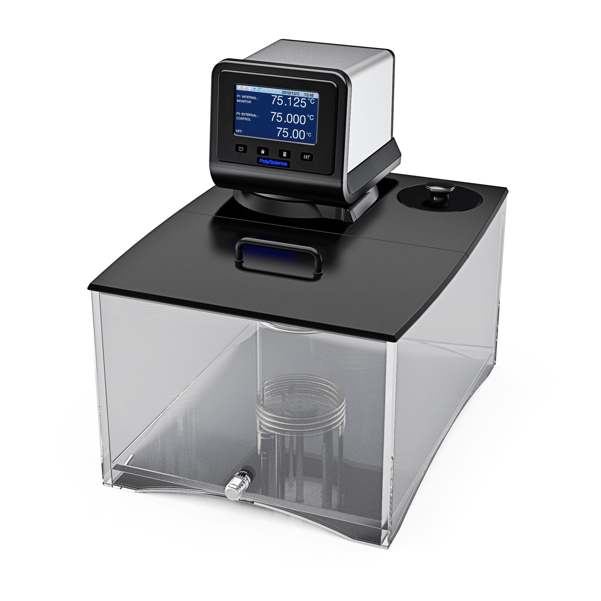 • Includes Enhanced Hardware & Software Package (Pt100 temperature probe, USB flash drive for data logging, stainless steel fittings and tubing adapters, PolyScience LabVIEW™ Virtual Instrument)