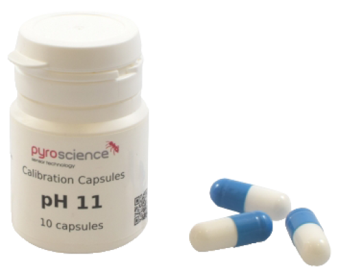 For recommended basic calibration of optical pH sensors. Each capsule results in 100mL calibration buffer solution (PU=10).