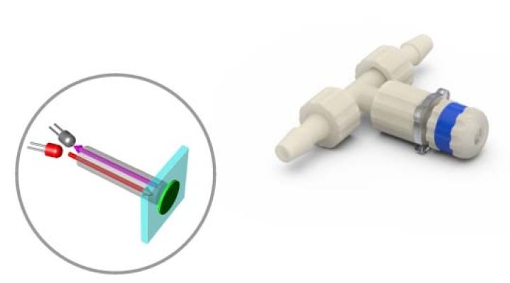 • Flow-through cell with integrated optical oxygen sensor