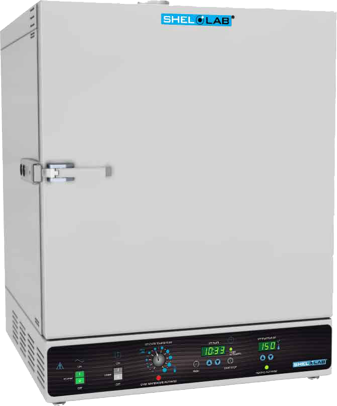 This gravity convection oven provides a degree of uniformity comparable to most forced air ovens on the market. The 99 min 59 hr digital timer has an independent control so its use is optional. Once the timer expires the power is cut to only the heating elements.