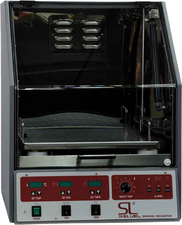 The SSI3 has a transparent hood that lifts up via a hydraulic system so it will function in tight places. All of our shaking incubators feature stainless steel interiors which provide excellent durability and an easy-to-clean surface. Each unit has an easy-to-read LED display. The rotation platform is included with each unit and is self-centering for easy installation.