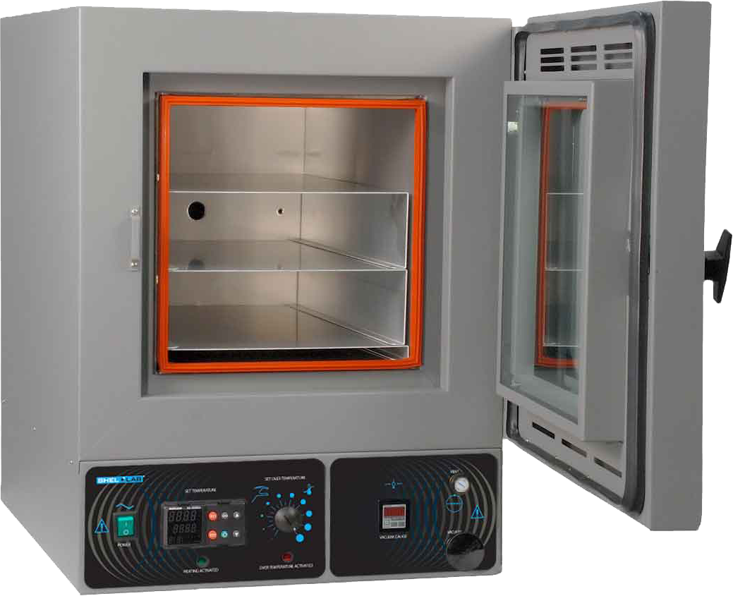 SHEL LAB vacuum ovens provide exceptional capabilities for fast and gentle drying of heat sensitive materials. They prevent residue accumulation on products and also allow safe drying of materials at lower temperatures than typically required when using convection ovens. All SHEL LAB vacuum ovens are built with a seamless stainless steel chamber for exceptional durability. Our double plenum design meets UL, CSA and EU safety requirements resulting in a cool outer surface. To achieve required vacuum levels, users can choose from a 3/8 inch orifice or a KF25 fitting to withstand heavy use and minimize draw-down time. Maximum permitted end vacuum is 10 mTorr. Leak rate is 10 mTorr per hour.